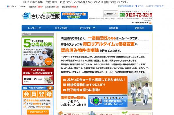 さいたま住販株式会社は埼玉密着の不動産会社として、経験豊富なスタッフがさいたま市を中心に物件情報をスピーディ且つ正確に紹介しており、信頼できる情報を毎日リアルタイムでお届けしています。お客様のニーズに応える住まい探しのため、一戸建てからマンション、土地の情報まで幅広くご紹介することが出来ます。それら多くの情報を閲覧することができるのがこの度公開したホームページでございます。物件情報の更新を毎日適正にし、画像も豊富に掲載することで、お客様の安心したマイホーム探しにお役立ちさせて頂ければと考えております。