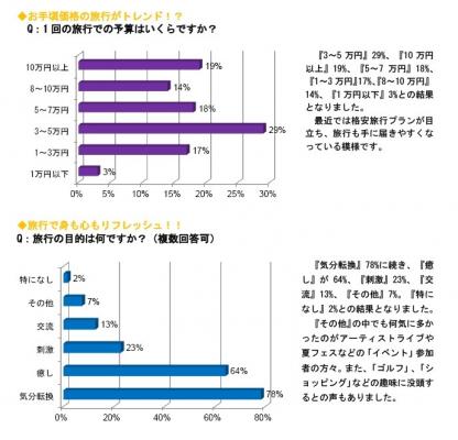今回の調査により、多くの方にとって旅行は毎年恒例のイベントであること、また、ストレス社会の日本においては身心をリフレッシュするために重要であると考える人が多いようです。