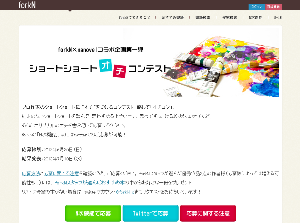 ■forkN『ショートショートオチコンテスト』の詳細はこちら