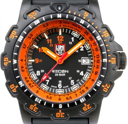 そしてルミノックス最大の特徴である自己発光システム「ルミノックス・ライト・テクノロジー」により、夜間においても光が弱まることなく、常に最良の視認性を発揮。9-12時部分は他と発光色が異なり、コントラストの効いた発光カラーは、デザイン性と共に視認性もアップしています。