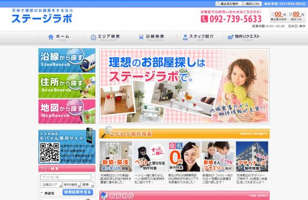 不動産業に特化したWEB集客コンサルティング事業・インターネット広告代理事業を行う株式会社いえらぶGROUP(所在地:東京都新宿区 代表取締役:岩名泰介)は、ポータルサイト「いえらぶ」 に連動する自社ホームページ構築支援ASP「いえらぶCLOUD」によるホームページを、天神周辺の賃貸物件情報を扱う不動産会社『株式会社ステージラボ』様に提供し、公開致しました。
