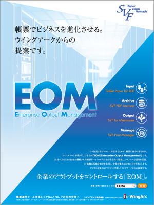 ウイングアーク株式会社は、企業内の情報のアウトプットをコントロールし、帳票を全社的に一元管理するという新しい提案「EOM (Enterprise Output Management)」、及びEOMを実現する多彩な「SVF新製品」に関する広告展開を本日より実施します。