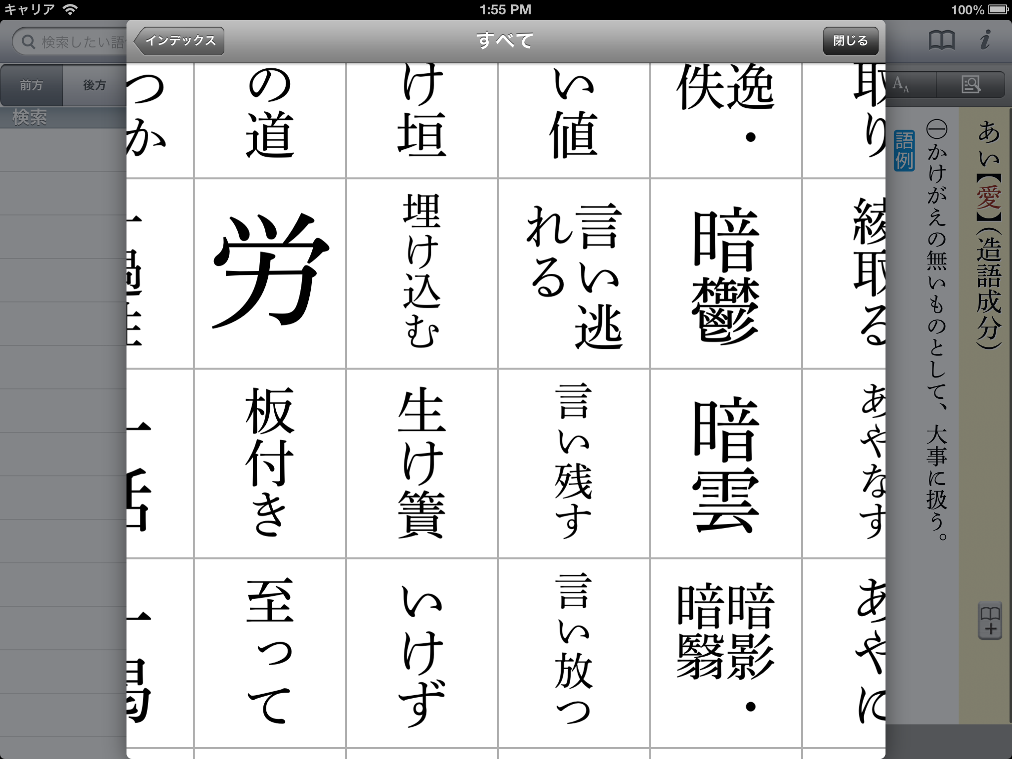 また、画面を最大限活用したタッチパネル検索を搭載。単語を記したパネルを所狭しと並べることで周囲の単語を見渡すこともでき、従来不足しがちとされてきた一覧性を補いました。