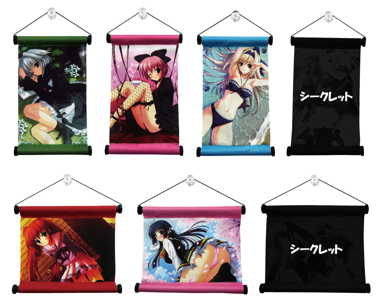 5人のヒロインキャラクターによる5種類とシークレットのタペストリーがランダムで封入されています。
