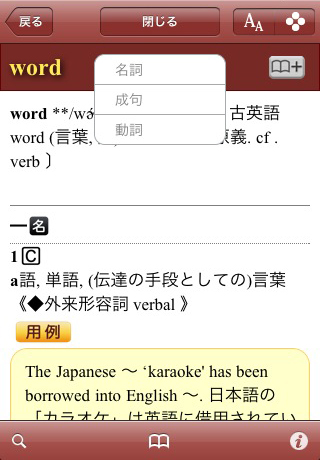 ●検索結果に表示された単語をタップすることで連続辞書引きが可能
