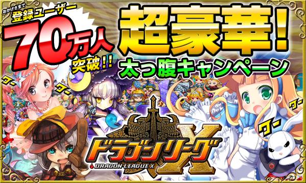 リアルタイムバトルRPG「ドラゴンリーグX」はこの度、登録ユーザー数が70万人を突破いたしました。