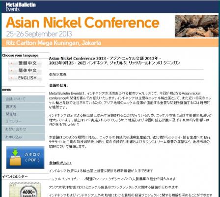 会議:「Asian Nickel Conference 2013 -アジア・ニッケル会議 2013年」