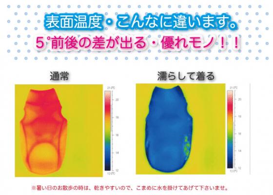 特徴:水に濡らして着用すると、一気に5°冷却出来ます。