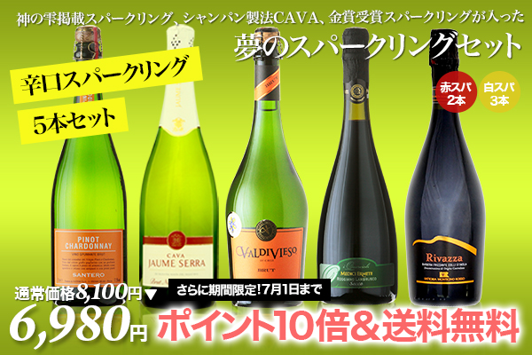 辛口スパークリングワイン5本セット 価格6,980円(税込)