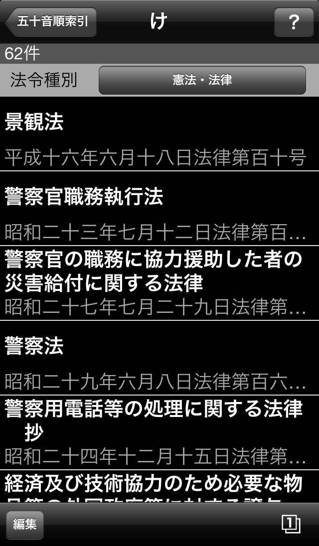 iOS6とiPhone 5の4インチディスプレイに対応、平成25年3月1日までの官報掲載法令(総務省行政管理局が整備しているデータ)を搭載、文字の種類にゴジックを追加し、明朝と切替が可能となりました。