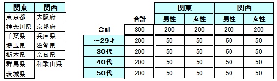 調査対象者:15~59才一般男女 800名 (関東400名/関西400名)