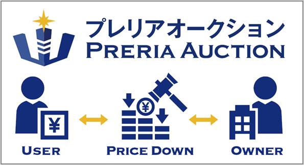 「プレリアオークション」とは、不動産の売買・仲介事業者から出品され、厳正な審査を通過した優良な物件を、限定1,000名の会員のみがプライスダウンオークション方式で落札できる、PCおよびスマートフォン向けの会員制Webサービスです。