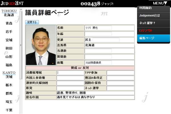 ⇒ 自分のアカウントを持っている 議員は、好きな時に 自分のプロフィール(情報)を編集する事ができます。