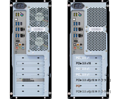 本体前面に1台、背面に2台装備された8cmファンと天板の12cmファンには、システムからの発熱量に応じて回転数がコントロールされるPWM(Pulse Width Modulation)ファンを採用しています。さらに、側面にも12cmのオプション・ファンの追加が可能です。