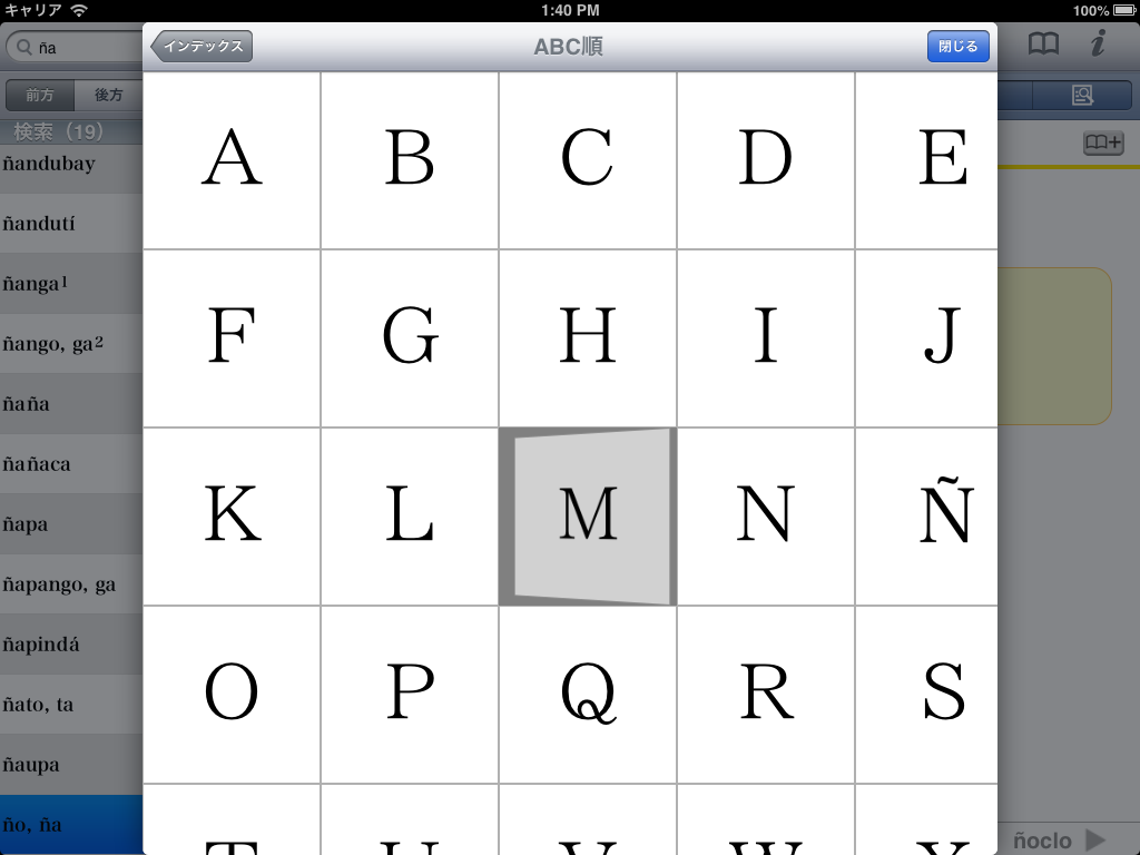 文字を入力すると候補見出し語が表示されるので、うろ覚えでも見つけやすい
