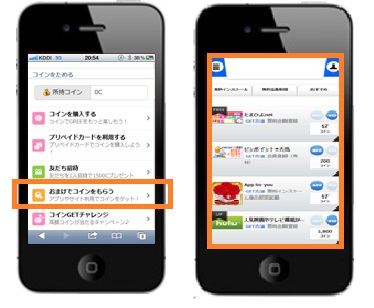 「メニュー」→「アプリ」→「コイン」→「おまけでコインをもらう」→「サービスのご利用でコインをGET!」