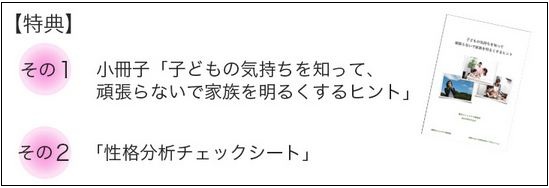 特典1:小冊子「子供の気持ちを知って、頑張らないで家族を明るくするヒント」プレゼント!