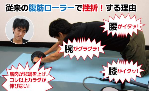 通常の腹筋ローラーは、膝をついて行う場合、運動中にどうしても膝の痛みがつきものでした。