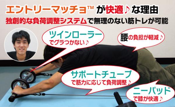 バランスボディ研究所は、7月17日(水曜日)、これまで何度も筋トレにギブアップしてしまった人でも無理なく続けることができる、サポート機能付き腹筋ローラー【エントリーマッチョ】(http://www.entrymacho.com/)の発売を開始したことをお知らせいたします。
