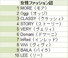 アンケートの結果、50誌以上の回答が寄せられましたが、1位は『MORE』でした!回答者の約7割が30代以上でしたが、10代・20代に人気が高い「MORE」や「ViVi(ヴィヴィ)」も上位にランクイン。