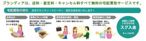 「ブランディア」は2007年のサービス開始より、延べ50万人以上の皆様の不用になったバッグ・アクセサリー・時計・衣類などのブランド品の買取を行っております。家にいながら買取を依頼できる送料等すべて無料の宅配買取サービスです。高級品~身近なブランドまで、5,500種類以上という取扱ブランドの幅の広さが特徴で、急速に利用者数を伸ばしております。ブランディアのサービスはインターネットに特化し、店舗を持たずに展開している日本で唯一の【買取サービスモデル】として、リユース品を通じた循環型社会の構築に努めてまいります。