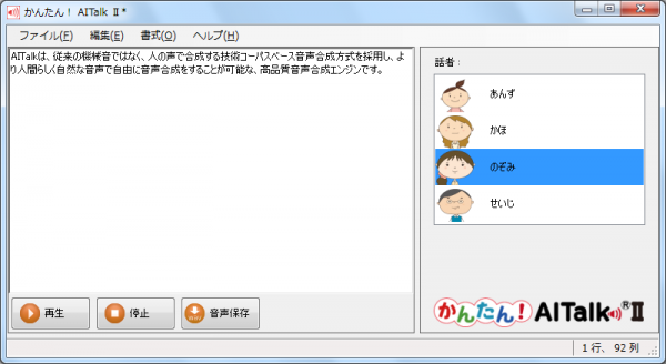 ※かんたん!AITalk(R)IIPlusのみの取り扱いです。