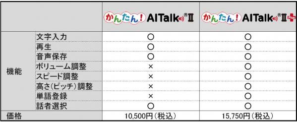 ※機能追加はかんたん!AITalk(R)IIPlusのみです。
