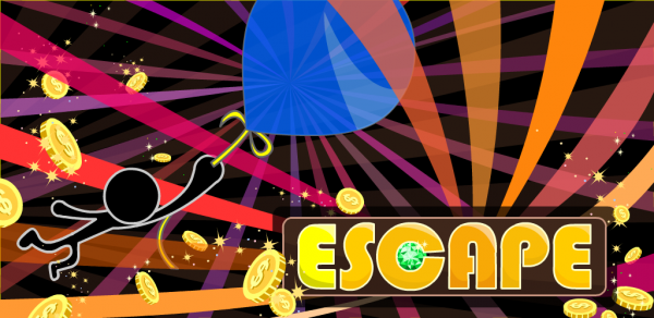 風船に捕まった棒人間が地下から脱出をしていくコインゲームです。