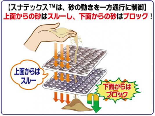 下から入ってくる砂も決して上部には通さないという、完全なるサンドレス状態を作りだします。
