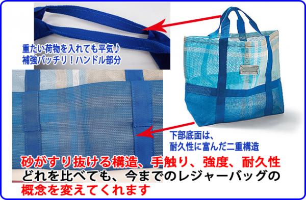 ●砂が通り抜けてゆくバッグで、夏のおでかけも快適。
