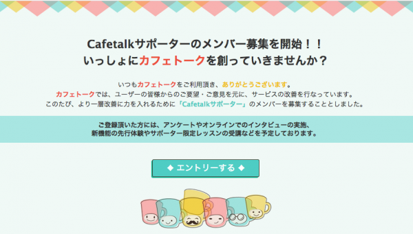 ▽「Cafetalkサポーター」メンバー募集を開始!