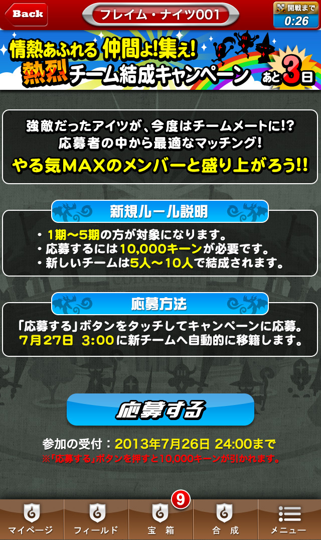 「熱い」ユーザー同士で組まれた新チームなら、「リーグ戦」や「イベント」をこれまで以上に楽しめること請け合いです!このチャンスを是非お見逃しなく!!