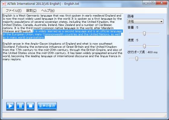 AITalk International(R) 2013 とは、外国語対応の音声合成エンジンです。従来より提供していたAITalk International(R)から動作環境を一新し、最新のPC環境でもご利用いただけるようバージョンアップしました。