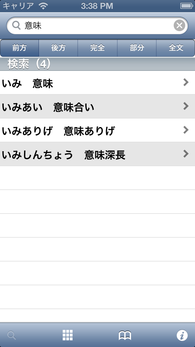 ・文字を入力すると候補見出し語が表示されるので、うろ覚えでも見つけやすい
