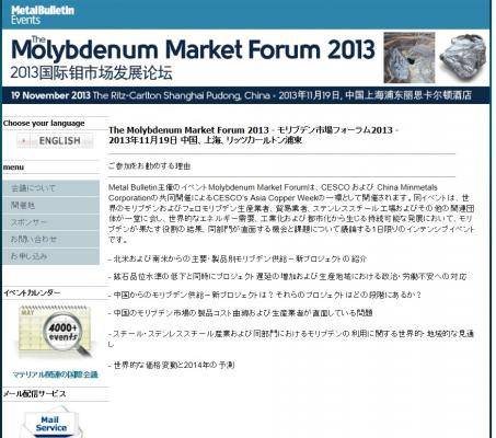 会議:「The Molybdenum Market Forum 2013 - モリブデン市場フォーラム2013」