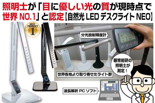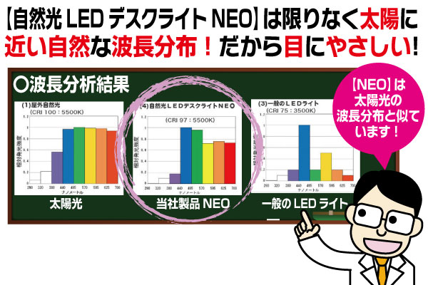 【自然光LEDデスクライトNEO】は、波長を限りなく自然光に近づけることに成功。