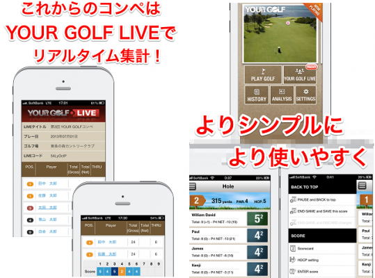 「YOUR GOLF LIVE」は、ゴルフコンペなど同じゴルフ場で同時にプレーするゴルファー同士が、