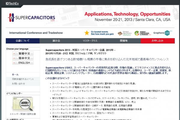 会議:「Supercapacitors 2013 - 米国スーパーキャパシター会議 2013年」