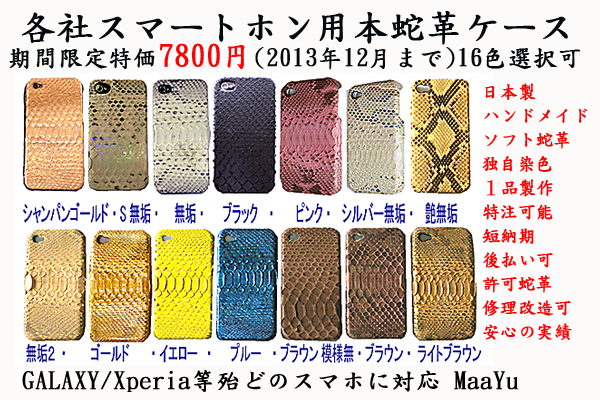 株式会社マーユではiPhone3の時代からオリジナル製作で蛇革革張りシェルケースを行っており、