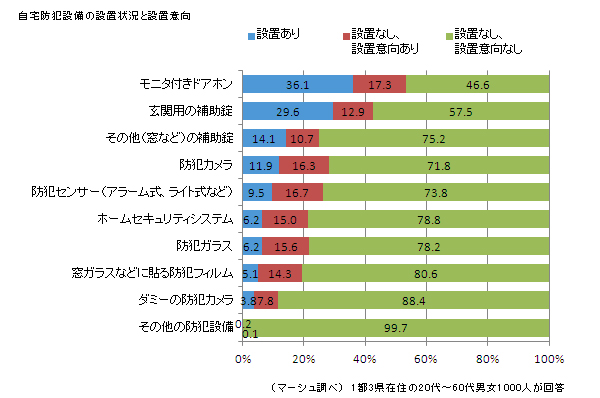 1都3県在住の20代~60代までの男女を対象に、防犯設備と防犯・護身用グッズに関するアンケート実施しました。