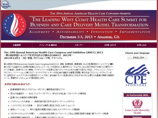 学会:「The 10th Annual American Health Care Congress and Exhibition (AHCC) 2013-第10回米国ヘルスケア年次学会および展示会(AHCC) 2013年」