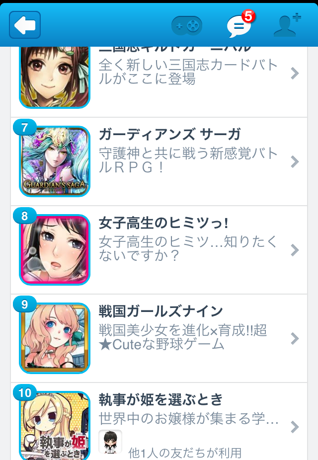 サービス開始より1週間目で継続率50%とユーザ定着率が高く、女性のユーザも30%と美少女系ゲームでありながら多くの女性ユーザも獲得し。8月6日時点でiPhoneの新着ランキング10位以内に登場していました。
