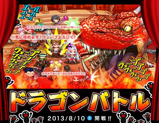 iPhoneアプリ「ドラゴンリーグX」のメインバトルインベント、『ドラゴンバトル』が2013年8月10日(土)に開催されます。本バトルは7月29日(月)~8月9日(金)まで行われている「第12回ドラゴンリーグ」において、3階級(S級、A級、B級)のうちS級1位に輝いたチームにのみ出場することができます。尚、本バトルは誰でも観戦ができます。また同時に、自身が所属するグループの代表チームに加担することもでき、観客専用のコマンドや、代表チームのシャウトなど、代表チームと観客同士のコミュケーション・連携が可能です!リアルタイムに繰り広げられる究極の戦いに、ぜひご参加ください!