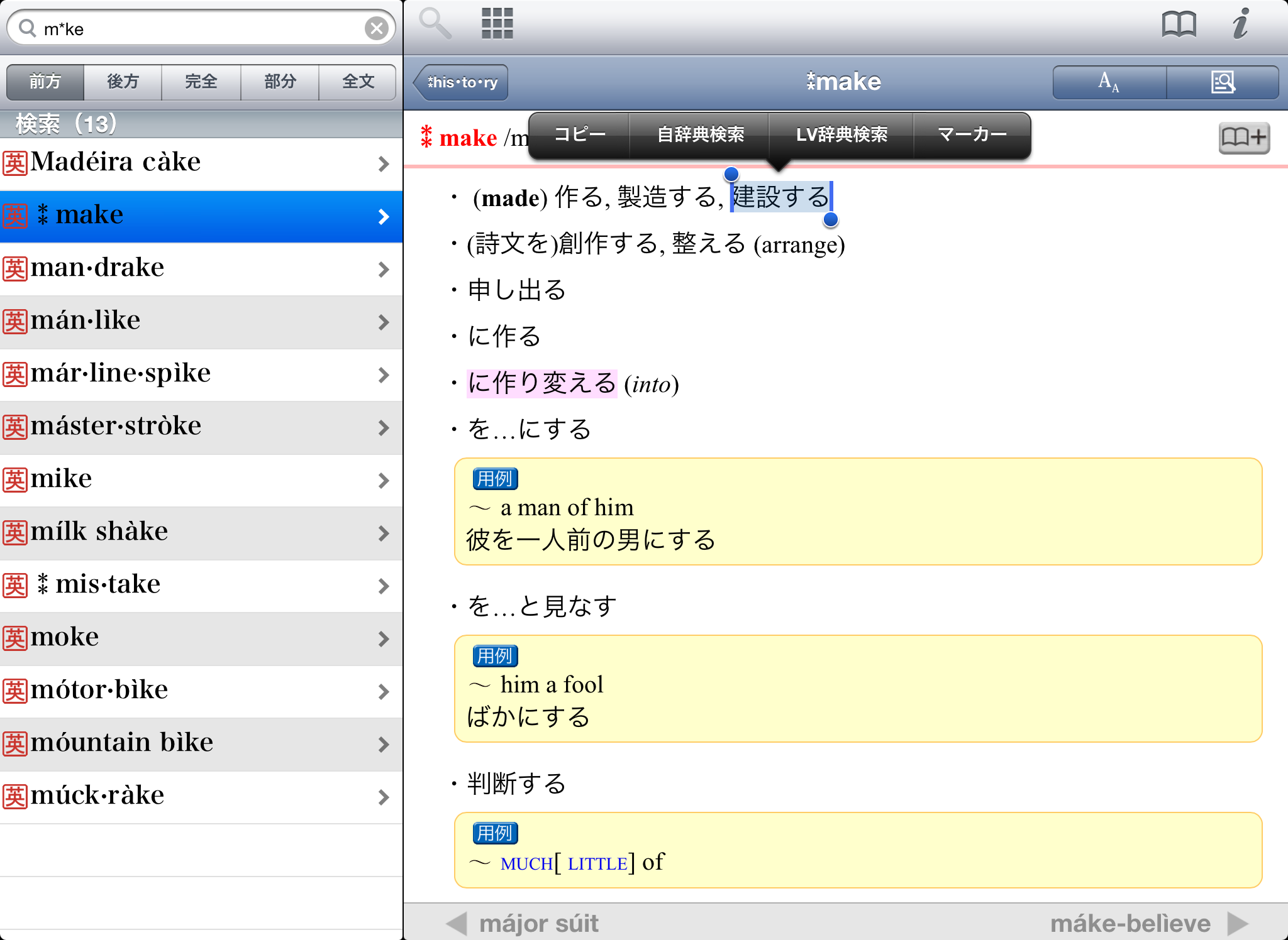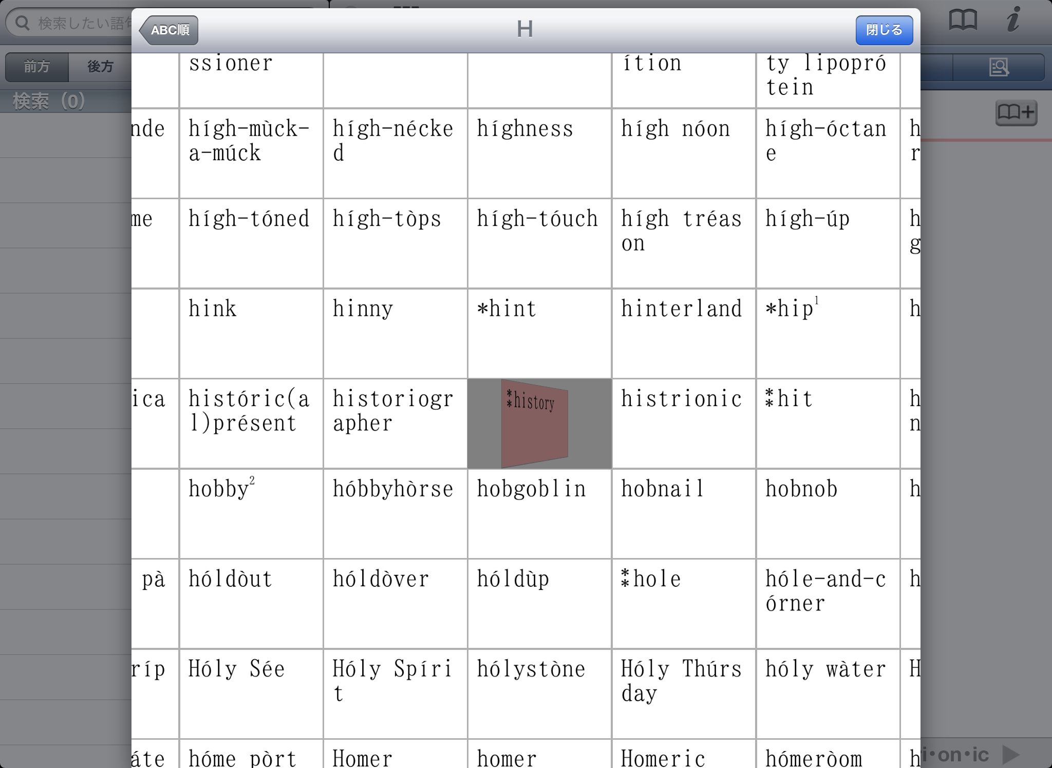 ●文字を入力すると候補見出し語が表示されるので、うろ覚えでも見つけやすい