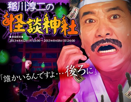 「ドラゴンリーグX」に、稲川淳二さんが登場!!イベント 『稲川淳二の怪談神社』は、超レアな本イベント限定召喚“稲川淳二”をGETできる「フィールドイベント」と、自分のアジトに稲川淳二さんが現れて、恐怖の怪談話を聞くことができる「最恐怪談Live」の、豪華2本立てです!
