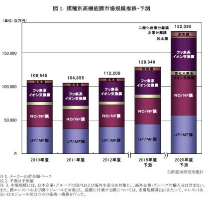 ◆市場予測:2020年度には2012年度比62.6%増、気体分離膜が市場拡大を牽引