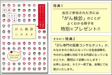 ☆当日ご参加された方には「がん検診」のことがよくわかる冊子を特別にプレゼントいたします。