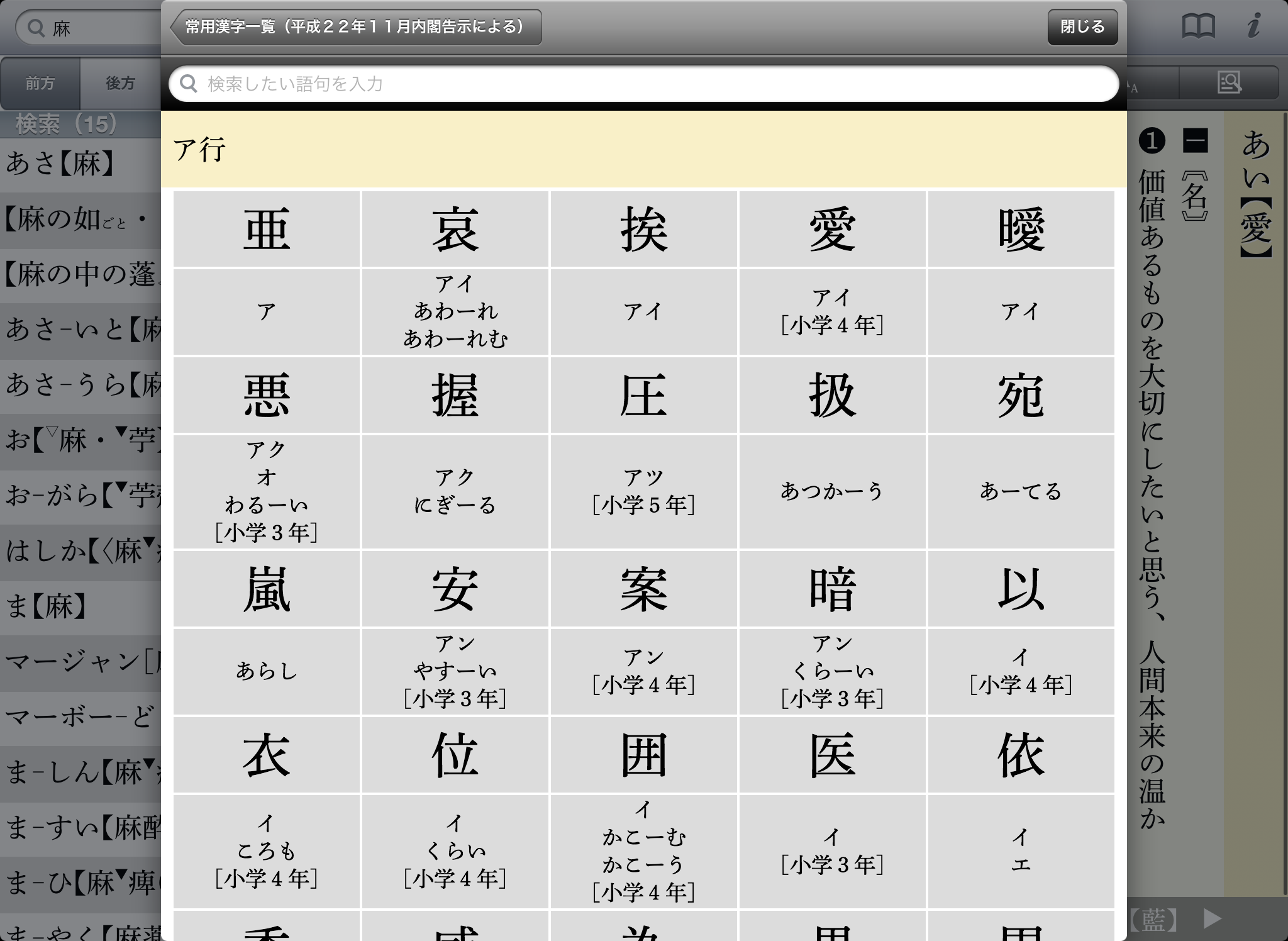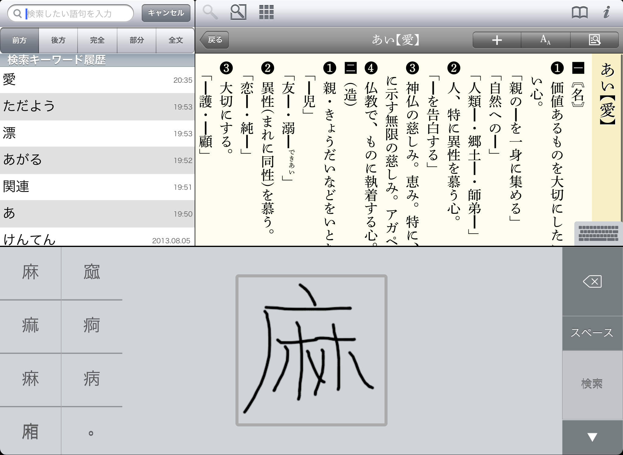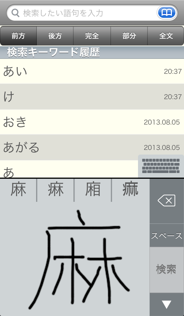 ●文字を入力すると候補見出し語が表示されるので、うろ覚えでも見つけやすい