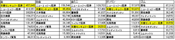 TOCOM7月度主要銘柄別売買枚数上位10社