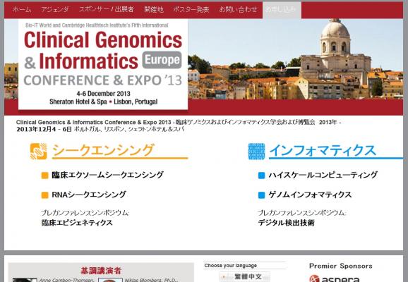 株式会社グローバル インフォメーションでは、皆様の利便性を図る為に、日本語、英語、韓国語、中国語で「Clinical Genomics & Informatics Conference & Expo 2013 - 臨床ゲノミクスおよびインフォマティクス学会および博覧会 2013年」の情報を提供するとともに、学会の参加のお申し込みを承っております。